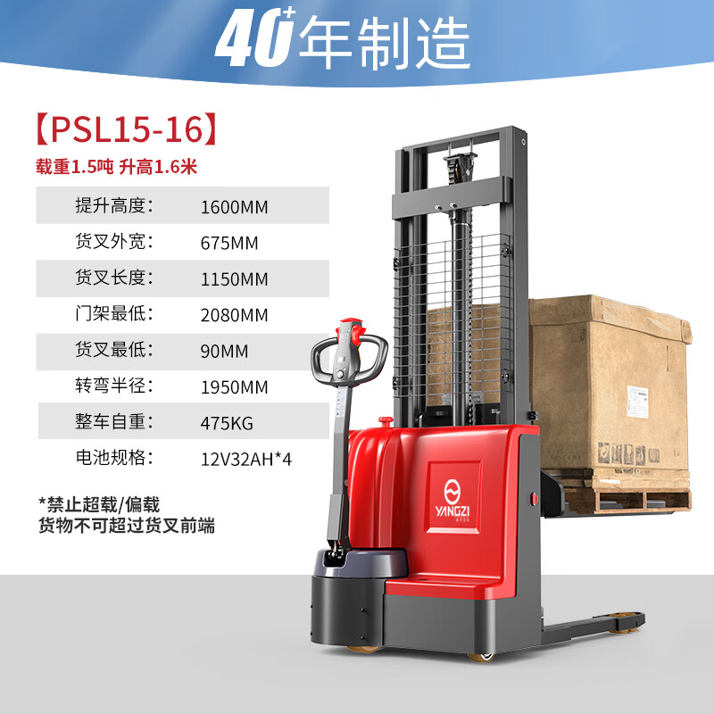 揚子電動堆高車升降叉車PSL1516-1.5噸升高1.6米,加厚C+H型鋼門架,優(yōu)質(zhì)加厚寶鋼,穩(wěn)固承重強